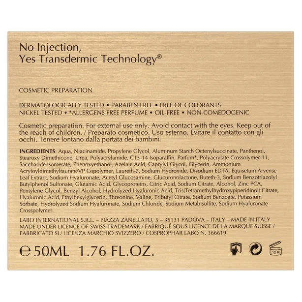 - Dermatologically tested • Paraben Free • Free of Colorants • Nickel Tested • Allergens free perfume • Swiss Patented • Made in Italy